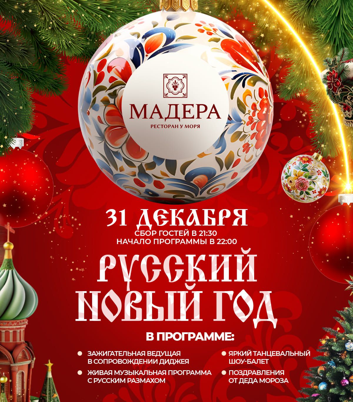 В новогоднюю ночь ресторан "Мадера" наполнится особой русской магией — тёплой, душевной и по-настоящему праздничной. Здесь, у самого моря, где мягкий шум волн становится частью вечера, праздник приобретает особое звучание: искренние улыбки, аромат горячих блюд, звон бокалов и свет гирлянд — всё сливается в атмосферу радости и вдохновения. В ночь наступления Нового года ресторан "Лаванда" приглашаем почетных гостей на Имперский Бал — событие, где величие традиций встречается с блеском современности. В парадных залах, под звуки инструментального квартета, гостей встретит мастер таинств и чудес — иллюзионист, открывающий двери в атмосферу волшебства. Ведущая вечера станет хранительницей ритма праздника, направляя его течение с изяществом и грацией. В программу бала войдут блистательные выступления кавер-группы и утонченного шоу-балета, чей танец воспламенит сердца и украсит ночь сиянием искусства. Для юных наследников империи приготовлены особые праздничные развлечения — веселая анимация, сказки и игры, дабы каждый ребенок почувствовал себя частью великого торжества.