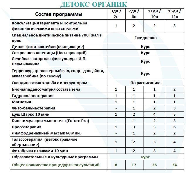 На базе Центра оздоровления Неумывакина можно получить лечение и оздоровление по одному из предложенных пакетов: