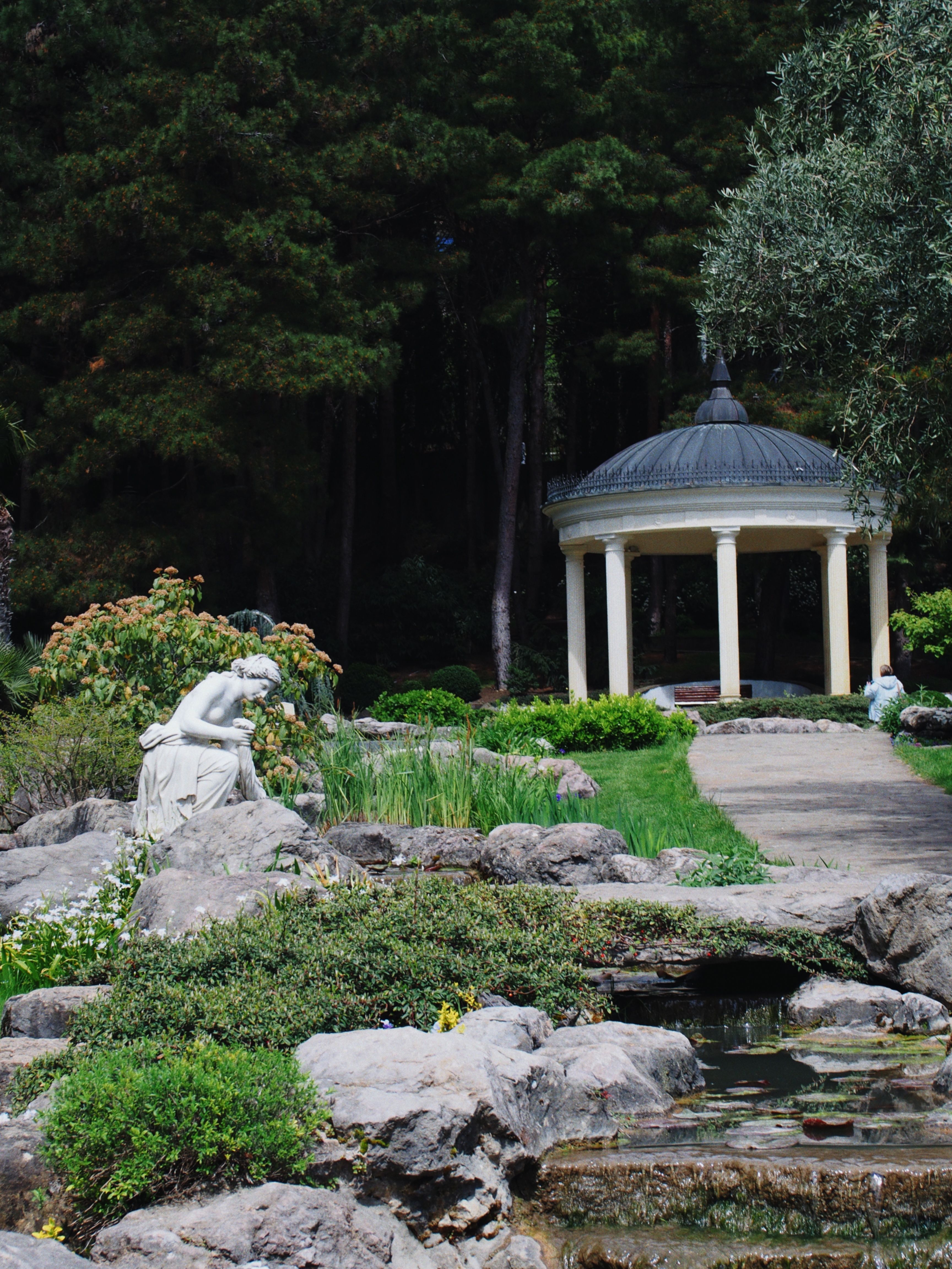 В парке с любовью оформлены сюжетные уголки: сады Романтический, Греческий, Мексиканский, Модерн, сад Ароматов, 200-летняя Оливковая роща, колодец Искушений. Парк украшают скульптурные композиции: богиня Флора, Нарцисс, сатир и нимфа, Жрица тайных откровений. Террасные сады цветут с ранней весны, высажен сад непрерывного цветения, сад рододендронов, сад гортензий. В парке множество весенних цветников и красивоцветущих кустов! Экскурсия по парку 1,5 часа.